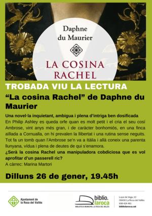 En Philip Ashley es queda orfe quan es molt petit i el cria el seu cosí Ambrose, vint anys més gran, i de caràcter bonhomiós, en una finca aïllada a Cornualla, on hi prevalen la llibertat i una rutina sense neguits. Tot fa un tomb quan l’Ambrose se’n va a Itàlia i allà coneix una parenta llunyana, vídua i plena de deutes de qui s’enamora.