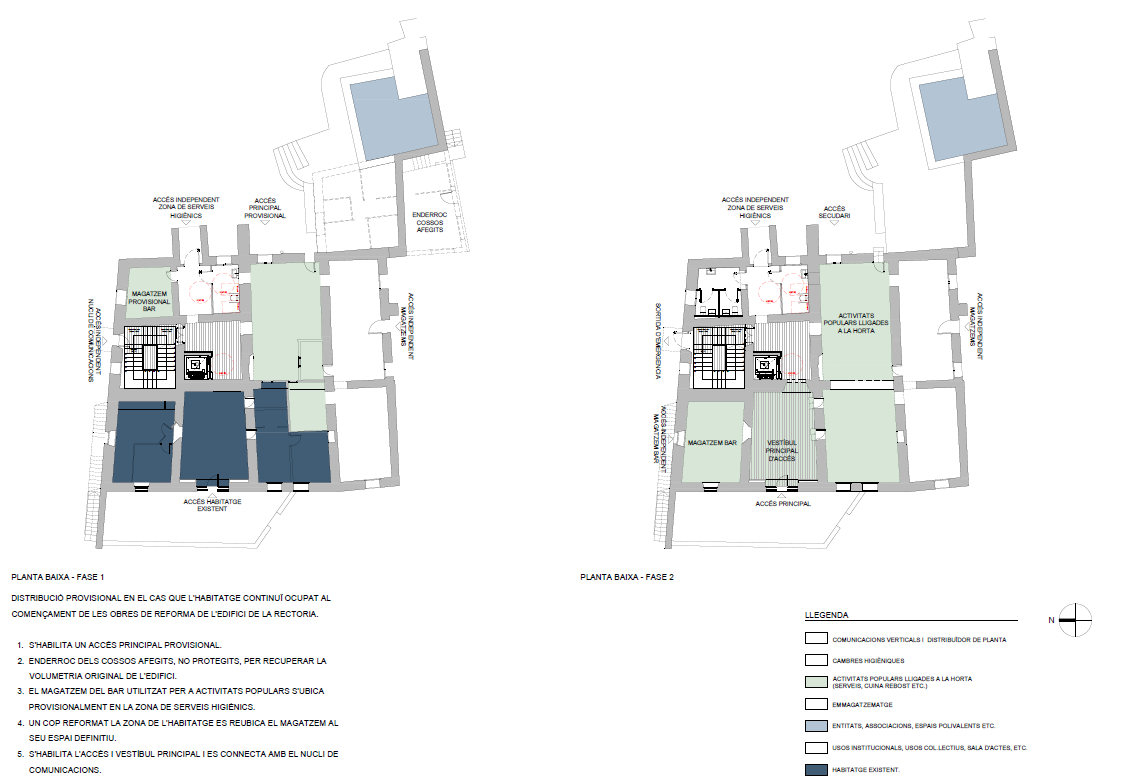 La fase 1 permetrà garantir la continuïtat dels usos existents mentre es duen a terme les primeres obres de reforma, amb accessos provisionals i zones temporals d’activitat.