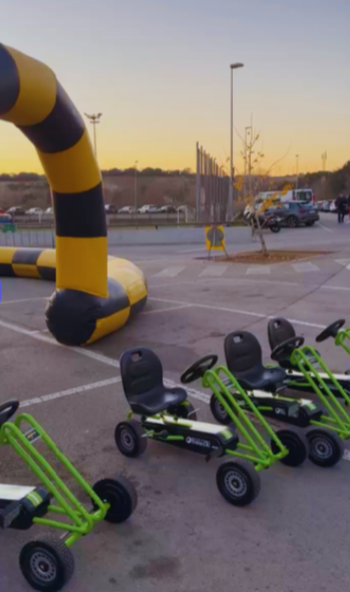 - Pista de karts: Una experiència de velocitat i diversió adaptada a tothom! La nostra pista inflable de karts permet a infants i joves gaudir de l’emoció de les curses en un circuit segur i controlat. Amb karts de diferents mides per a totes les edats, és una activitat ideal per a festes i esdeveniments on la competició i la diversió van de la mà. A més, és una proposta que fomenta el joc net, la cooperació i l’esperit d’equip. Cada cursa es viu amb emoció i rialles, creant moments compartits que fan d’aquesta activitat una experiència única i inoblidable".