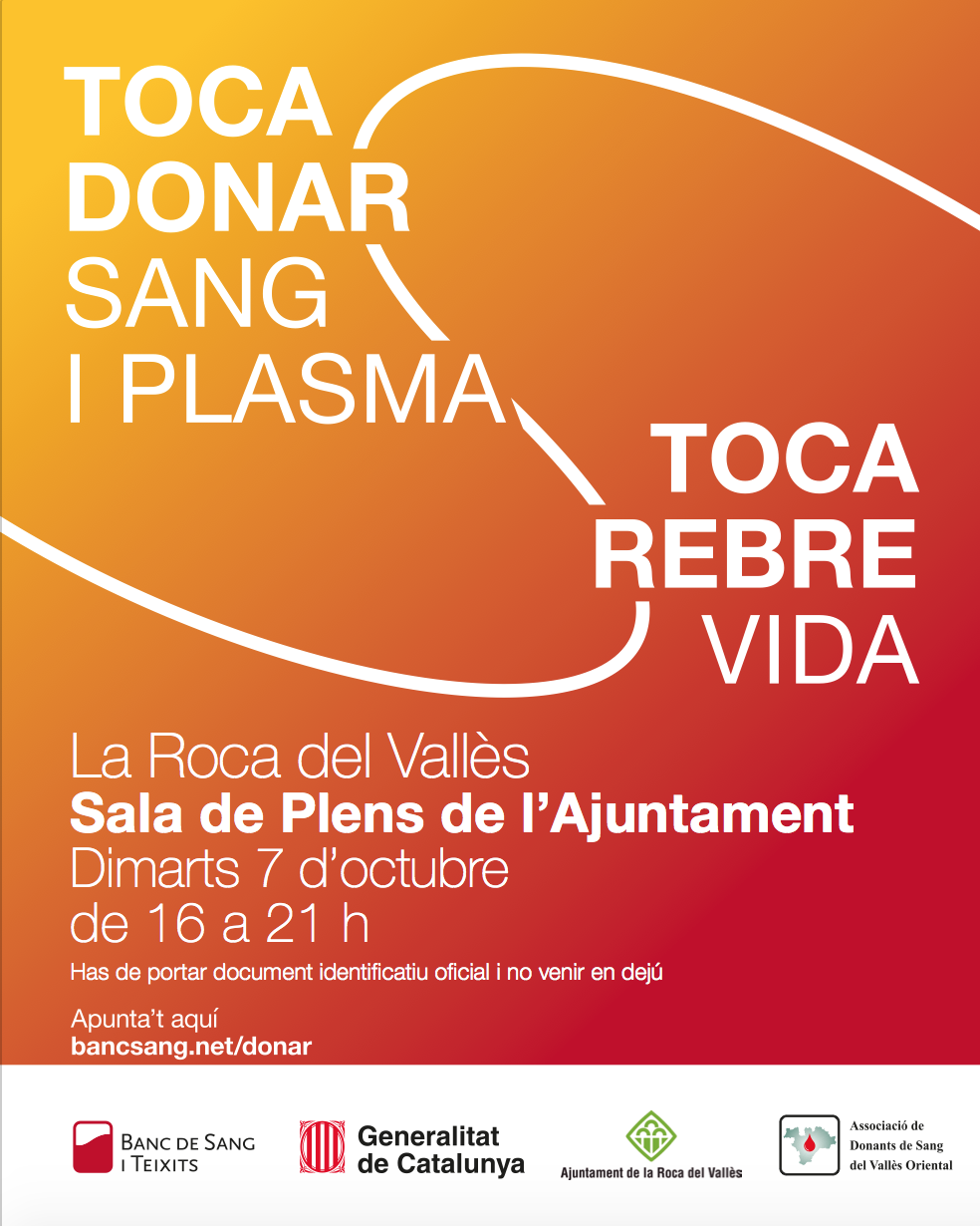 El Banc de Sang fa una crida per tornar a donar amb ‘les piles recarregades’ després de les vacances! No us perdeu una nova campanya de donació de sang a la Roca del Vallès.