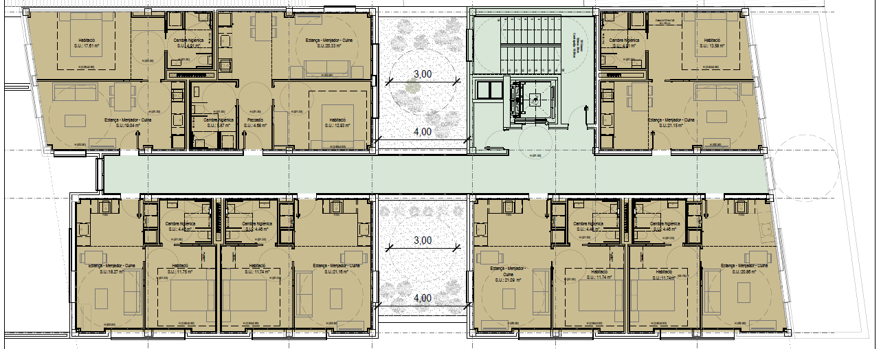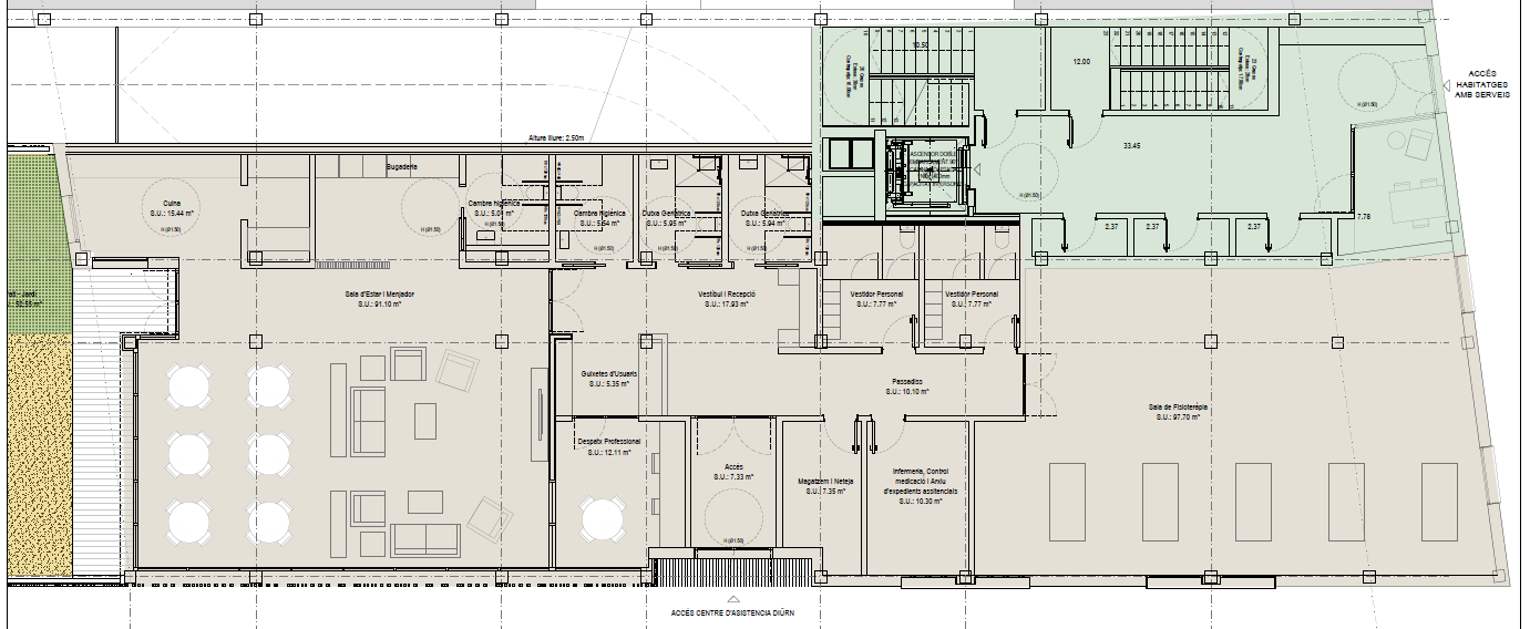 L’equipament s’ha dissenyat amb una clara orientació al confort i la convivència comunitària. A la planta baixa hi haurà el centre de dia, amb espais d’estada, menjador, àrea de fisioteràpia, cuina i jardí exterior. Les plantes superiors acolliran 13 habitatges tutelats, que permetran viure de forma autònoma amb serveis d’acompanyament i zones compartides.